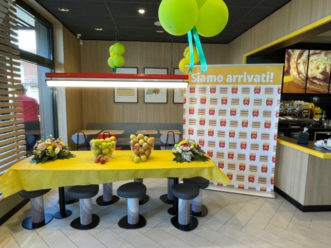 Nel nuovo negozio sono presenti 183 posti e si può ordinare in autonomia utilizzando i kiosk digitali. Nel locale, è disponibile anche la sezione bar, con spremute, bevande calde e prodotti da forno.